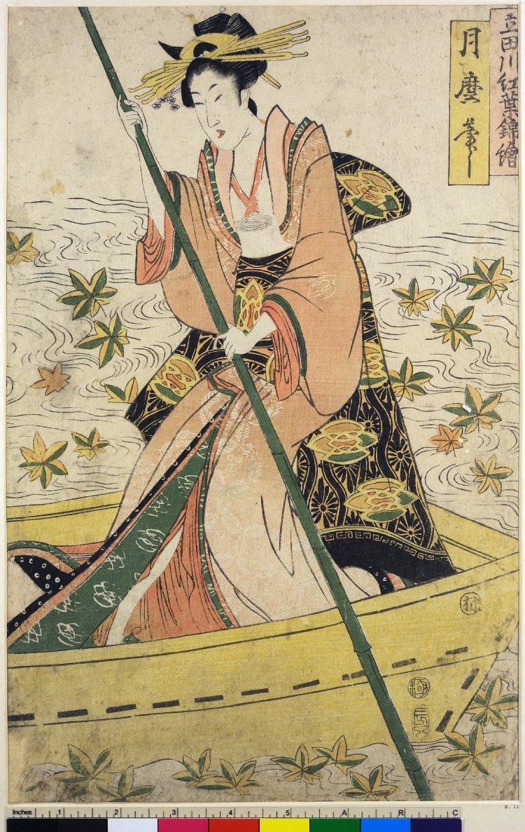 Previously, most prints had been in black-and-white, coloured by hand, or coloured with the addition of one or two colour ink blocks. A nishiki-e print is created by carving a separate woodblock for every colour, and using them in a stepwise fashion. An engraver by the name of Kinroku is credited with the technical innovations that allowed so many blocks of separate colours to fit together perfectly on the page, in order to create a single complete image.